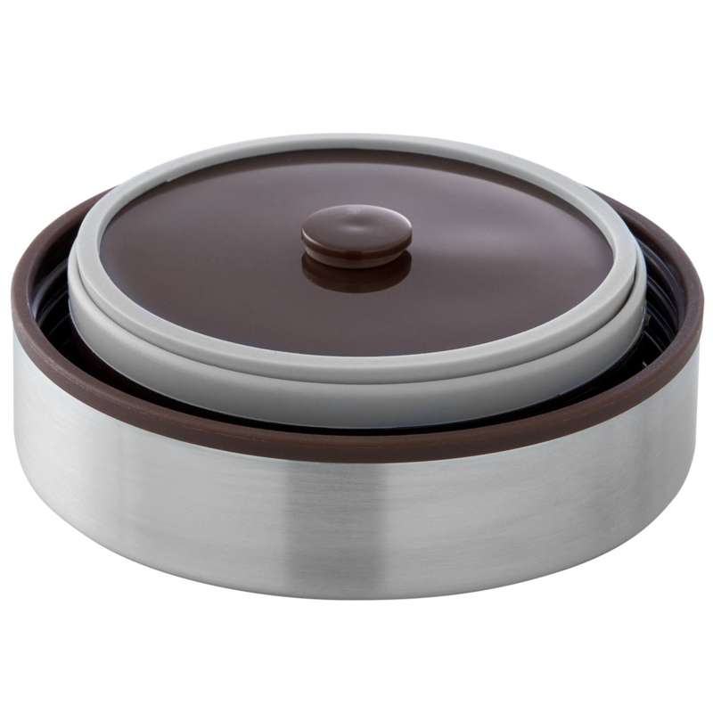 Ruokarasiassa on 100% tiivis kansi, jossa on pieni venttiili, jota voidaan painaa alas, ja sillä tavalla tasapainottaa ylipainetta ennen kuin se avataan. Ulompi kansi toimii myös syvänä lautasena - täydellinen rannalle, metsään ja vaellukselle!