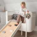 Luo motorisia haasteita lapsellesi asentamalla kiipeily- ja liukumäki Sebra Sänkyyn tai Sebra Kiipeilykolmioon.