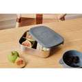 Une boîte à lunch légère en acier inoxydable avec et couvercle en silicone doux et trois compartiments pratiques.