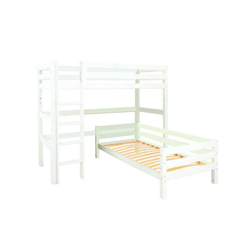 Hoppekids ECO Luxury - Krevet na kat - 90x200 cm. - Kutna kombinacija - Ravna ljestva - Fleksibilna podloga za madrac - Bijela