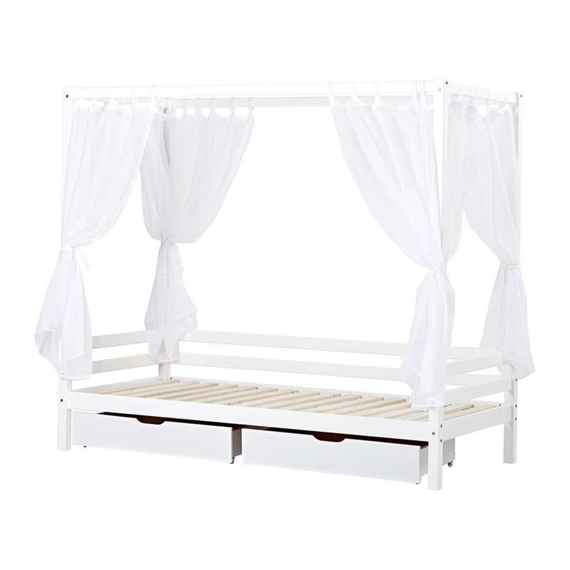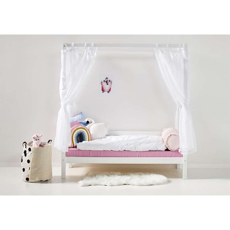 Hoppekids modul za krevet s baldahinom, koji lako pretvara običan Hoppekids ECO Dream juniorski krevet u fantastičan krevet s baldahinom. S ovim modulom možete stvoriti ugodan krevet u dječjoj sobi. Okvir kreveta stvara ugodnu i šuplju atmosferu, a da pritom ne zatvara ostatak sobe – posebno ako dodate et tkaninu za baldahin. Također možete ukrasiti krevet svjetlima i ugodnim jastucima kako biste stvorili et ugodan prostor za vaše dijete.