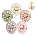 BIBS Boheme a modern boheme stílus ihlette. Természetes elemeivel és organikus sziluettjével friss, kreatív és esztétikus dizájnban tűnik fel a et. A pajzs gondosan úgy van megtervezve, hogy elhajoljon a gyermek szájának érzékeny és finom bőrétől, hogy megakadályozza a nedvesség felhalmozódását. A pajzs egy méretben kapható, függetlenül a Cumi mérettől. A Boheme természetes gumi/latex anyagban kapható kerek bimbófejjel 1 és 2 méretben.