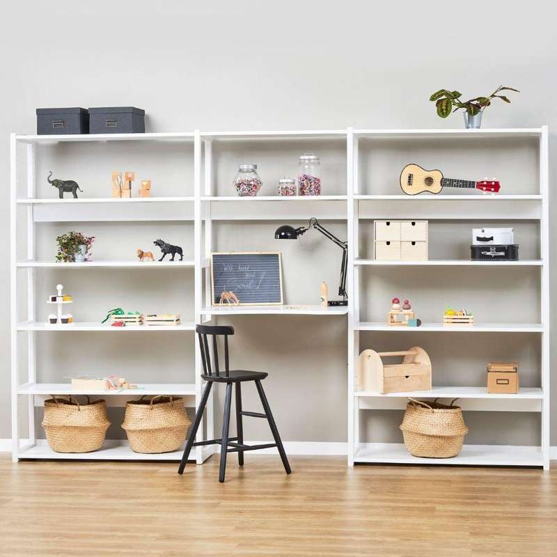 Hoppekids STOREY - Polc - 3 Szekció 14 Polccal és Írófelülettel - 80 cm. - Fehér