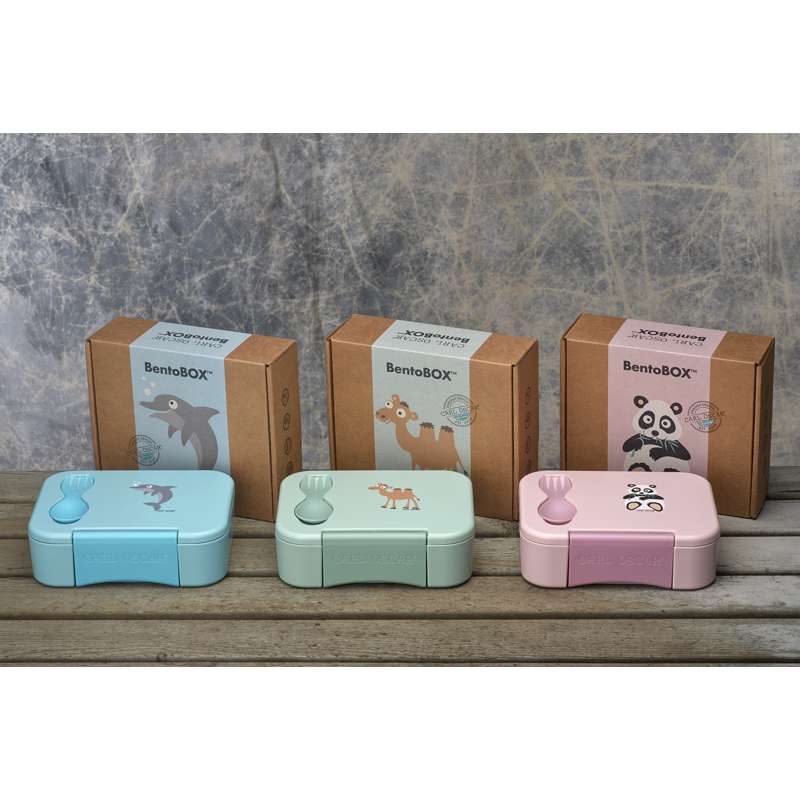 La BentoBOX viene fornita con le posate CUTElery™ fissate al coperchio. È dotata di una chiusura a scatto per una facile apertura e chiusura.