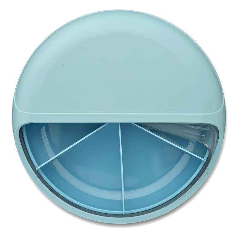 Una bella e pratica scatola per snack per grandi e piccini. BentoDISC è il fratello maggiore del popolare SnackDISC ed è quindi progettato come una cassetta rotonda con un disco rotante. Il disco ha 5 scomparti, che possono essere riempiti con cibo delizioso o snack, come ad esempio mini cracker, uvetta, noci, cetriolo, mela, uva o frutta secca.