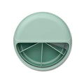 Una bella e pratica scatola per snack per grandi e piccini, che è la più piccola della 'famiglia' con BentoDISC, SnackDISC - e qui MiniDISC. MiniDISC è progettata come una cassetta rotonda con un disco/manopola rotante. La manopola ha 5 scomparti, che possono essere riempiti con deliziosi snack, come mini-biscotti, uvetta, noci, cetriolo, mela, uva o frutta/bacche secche.