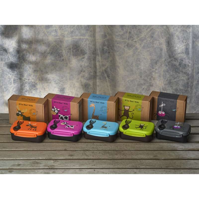 La scatola N'ice Box è dotata di un ulteriore piccolo contenitore con coperchio all'interno. Può essere utilizzato per trasportare cibi che rilasciano liquidi, come ad esempio frutta, verdura o yogurt. Nel coperchio la scatola ha et un elemento refrigerante estraibile, che dopo 8 ore di congelamento orizzontale può mantenere il cibo fresco fino a 5 ore a temperatura ambiente. Inoltre, la scatola ha et pezzi di CUTElery™ posate multifunzione nel coperchio.