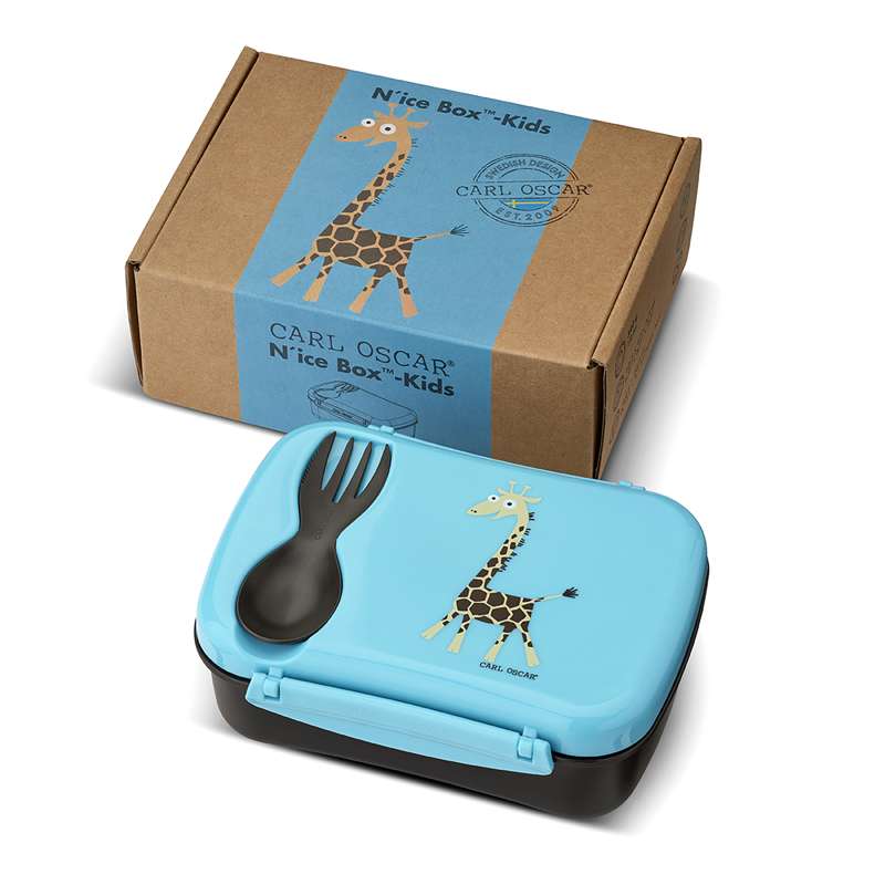 N'ice Box Kids con elemento refrigerante da Carl Oscar. Bellissimo colore turchese con una dolce giraffa sul coperchio.