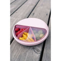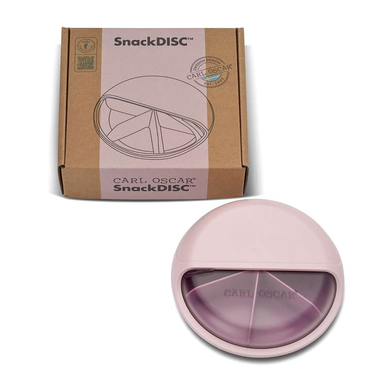 Una bella e pratica scatola per snack per grandi e piccini. SnackDISC è progettata come una cassetta rotonda con un disco/piatto rotante. Il piatto rotante ha 5 scomparti, che possono essere riempiti con deliziosi snack, come ad esempio mini cracker, uvetta, noci, cetriolo, mela, uva o frutta/bacche secche.