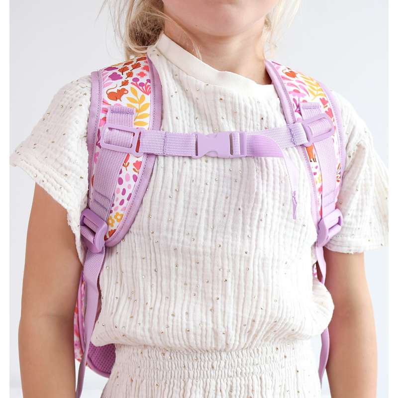 De schouderbanden van de rugzak zijn gevoerd en hebben et klikgespen, die over de borst van het kind worden bevestigd. Dit zorgt voor zowel comfort als ervoor dat de banden van de tas niet van de schouders van het kind afglijden.