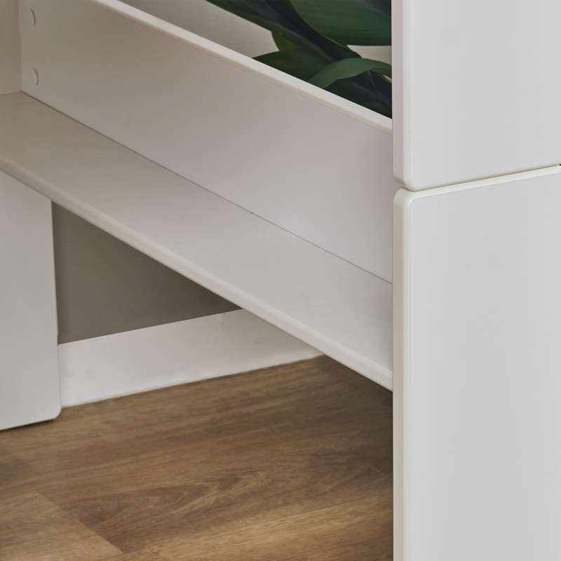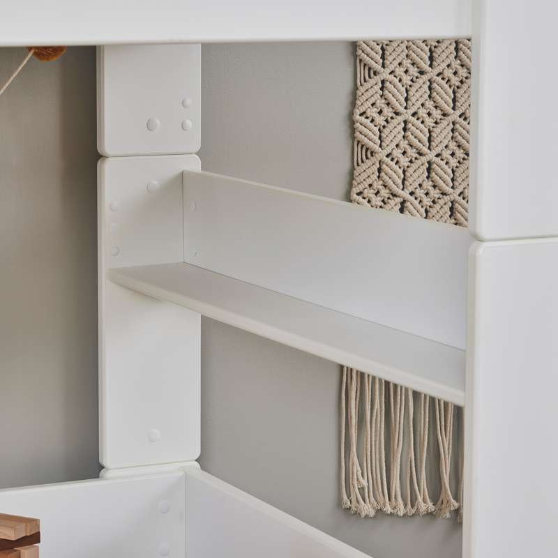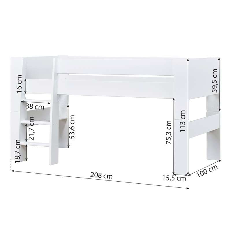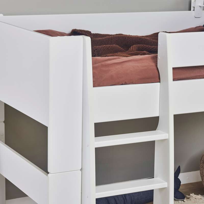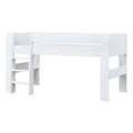 Het halfhoge bed is geconstrueerd van MDF, wat zorgt voor een stevige en betrouwbare basis die jarenlang meegaat. Het gladde oppervlak is gemakkelijk schoon te maken en te onderhouden, wat het een ideale oplossing maakt voor ouders die zowel stijl als functionaliteit waarderen. Het bed is ontworpen met zowel veiligheid als esthetiek in gedachten en is een goede oplossing voor kinderkamers met beperkte ruimte, omdat het de hoogte van de kamer benut. Met een lagere hoogte dan de traditionele Hoogslaper, biedt het halfhoge bed een optimale balans tussen ruimtebesparing en functionaliteit.