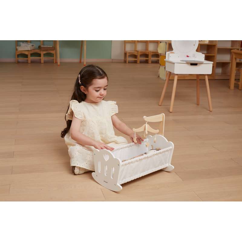 Læg dukken trygt til at sove i denne smukt fremstillede vugge. Dukkesengen er et charmerende tilbehør til rollelegen og passer til dukker op til 38 cm.