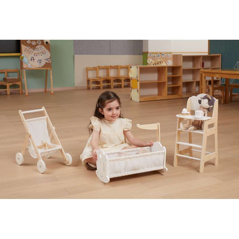 Den stabile konstruktion og de gennemførte detaljer gør sengen både holdbar og dekorativ. En oplagt gaveidé til det barn, der elsker at tage sig kærligt af sine dukker.