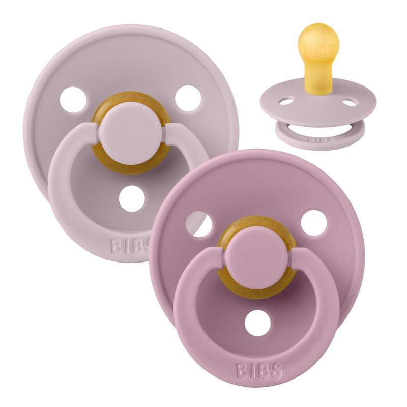 Bibs Rund Colour Smokk - 2-Pak - str. 1 - naturgummi - Dusk Lilac/Heather