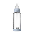BIBS Flaske - Sutteflaskesett - Glass - Silikon/Medium Flow/Rund - 240 ml. - Baby Blue