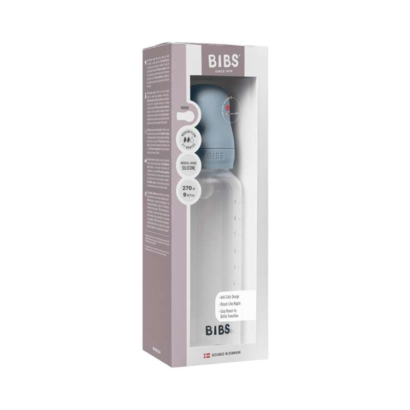 BIBS Flaske - Sutteflaskesett - Plast - Silikon/Medium Flow/Rund - 270 ml. - Baby Blue