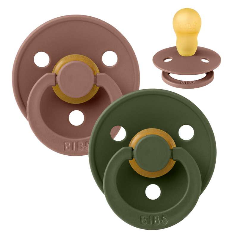 Smoczek Bibs Okrągły Colour - 2-Pak - roz. 3 - kauczuk naturalny - Zielony myśliwski/Ciemny dąb