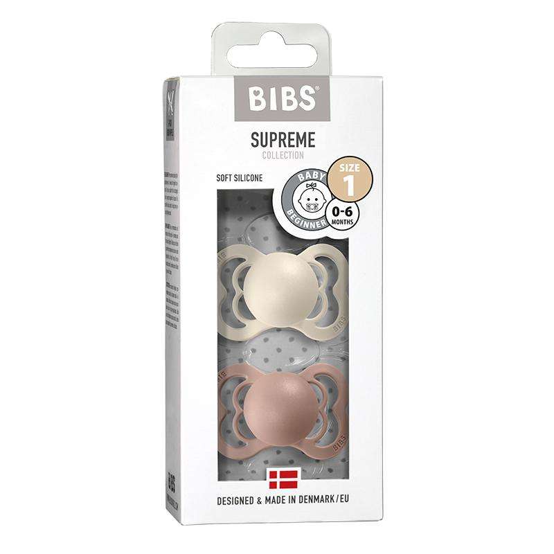 Smoczek Bibs Supreme - 2-Pak - roz. 1 - Silikon - Kość słoniowa/Róż