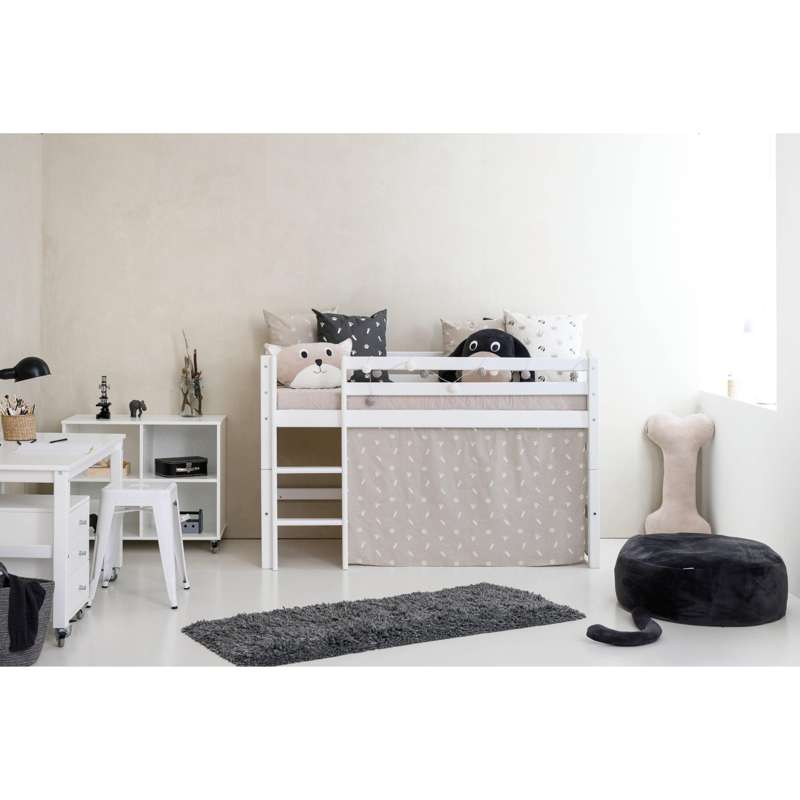 Wszechświat Pets jest idealny do stworzenia et bezpiecznego i przytulnego pokoju dziecięcego z najlepszym przyjacielem człowieka. Stonowane kolory sprawiają, że łatwo dopasować zasłonę do pokoju. Zasłona tworzy również przytulną norę pod półwysokim łóżkiem, która jest idealna do zabawy lub kiedy twoje dziecko potrzebuje małej przerwy od reszty świata. Możesz udekorować norę materacem, kocami, poduszkami, łańcuchami świetlnymi i innymi przytulnymi rzeczami.