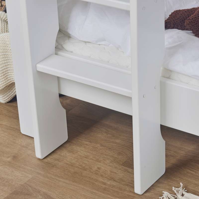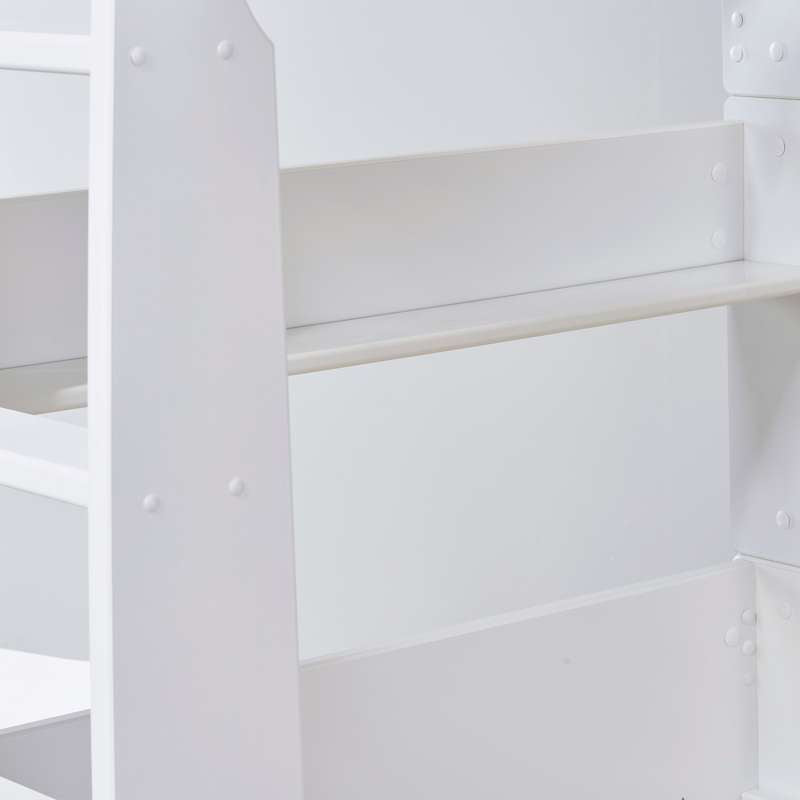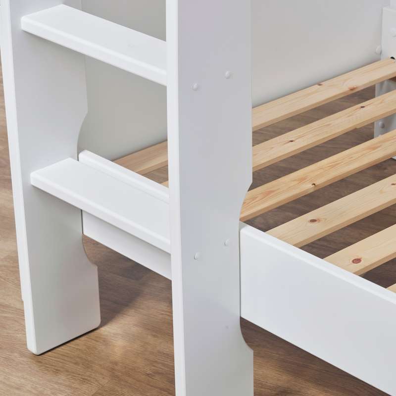 Łóżko piętrowe zostało skonstruowane z MDF, co zapewnia mu solidną i niezawodną strukturę, która gwarantuje stabilność i bezpieczeństwo dla obu miejsc do spania. Trwała konstrukcja została zaprojektowana tak, aby wytrzymać codzienne użytkowanie i będzie służyć przez wiele lat.