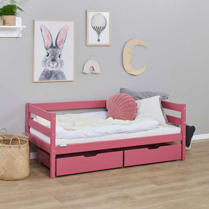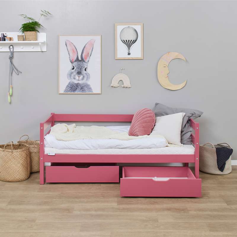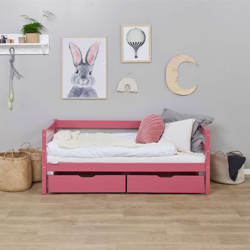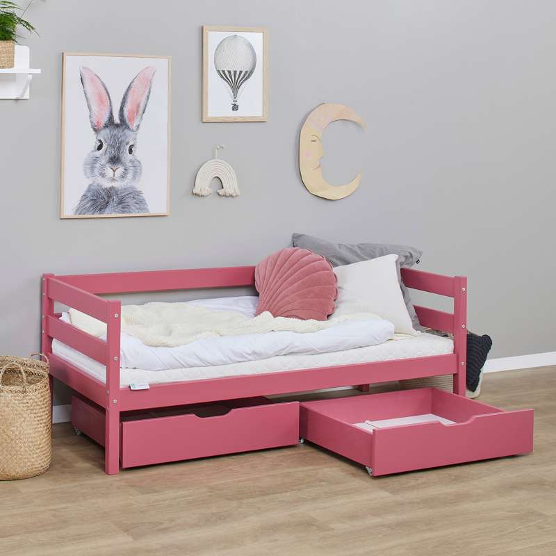 Zestaw szuflad z dwiema dużymi, praktycznymi szufladami od Hoppekids. Szuflady są idealne do przechowywania pościeli lub zabawek. Pasują pod łóżka o wymiarach materaca 70x160 cm. Szuflada jest pokryta ekologicznym, wodnym lakierem.