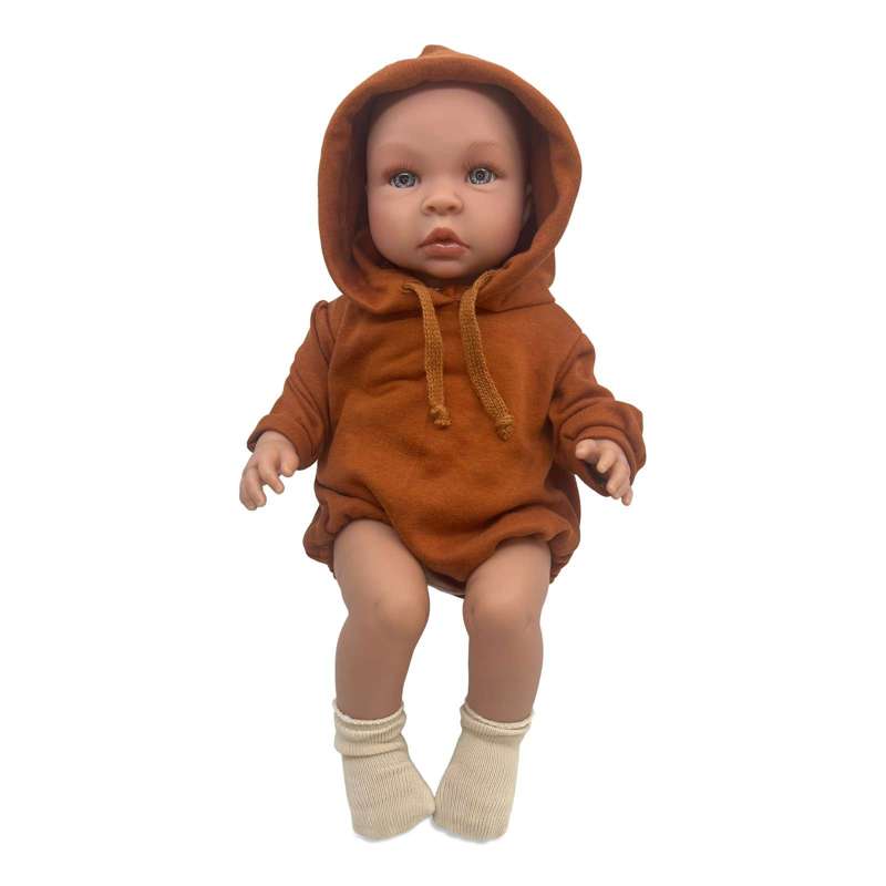 Utrzymuj ciało lalki w cieple dzięki uroczej, długoramiennej bodystocking z jersey z kapturem i ton w ton wiązaniem.