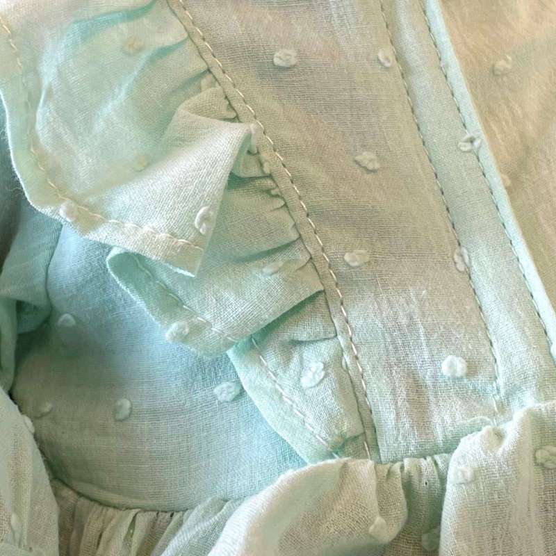 Ręcznie uszyta z lekkiej bawełnianej muśliny z kropeczkową strukturą w tkaninie. Sukienka pasuje do wszystkich lalek Leo, Leonora, Maria i Pablo i jest częścią kolekcji miks i dopasuj od Memories by Así, gdzie dziecko lub obdarowujący sam wybiera ubrania dla lalki.