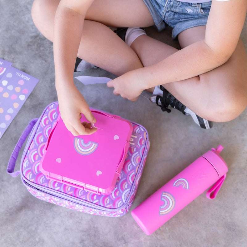 MontiiCo Wodoodporne naklejki do pojemników na jedzenie i bidonów - Tęczowy Roller