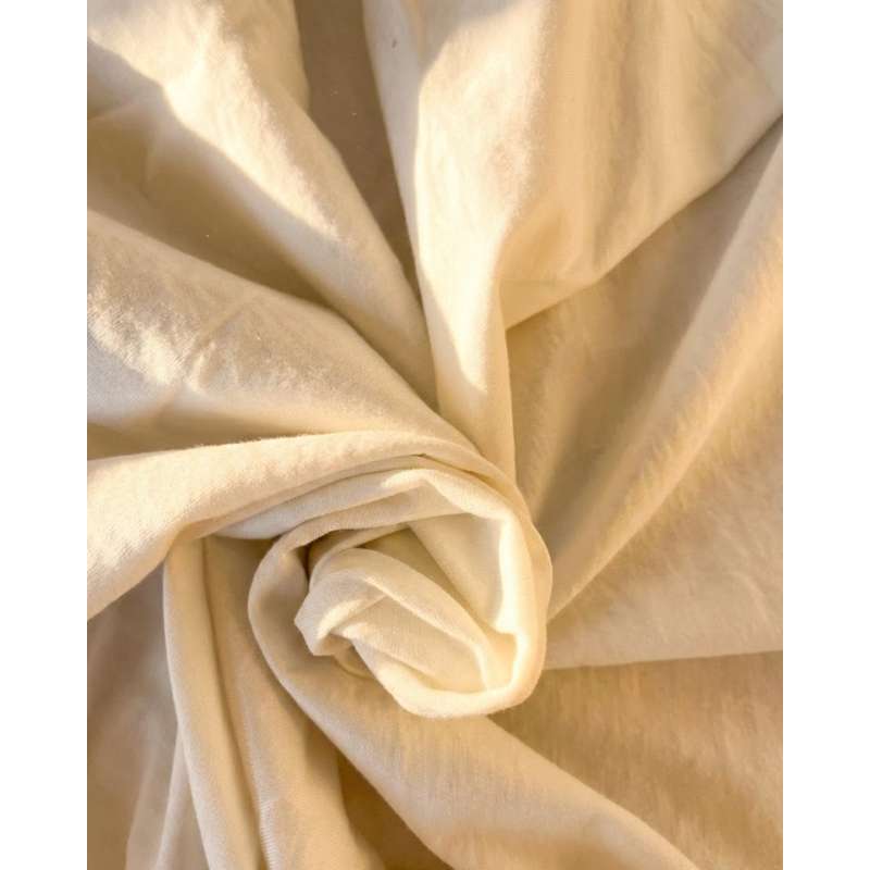 Den knækkede hvide/lyse creme farve giver et roligt og tidløst udtryk, der passer smukt ind i både moderne og klassiske børneværelser. Strækjerseyen gør, at lagnet former sig pænt efter madrassen uden at danne folder.