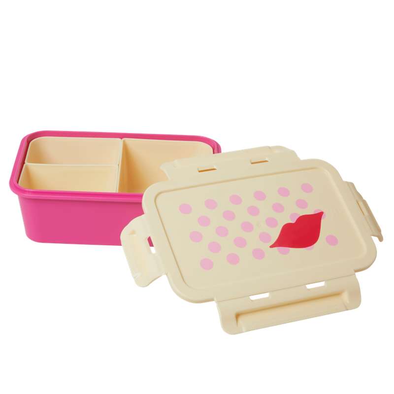 RICE Pojemnik na jedzenie z 3 wyjmowanymi przegrodami - Wzór Kiss - Fuksja