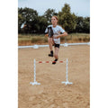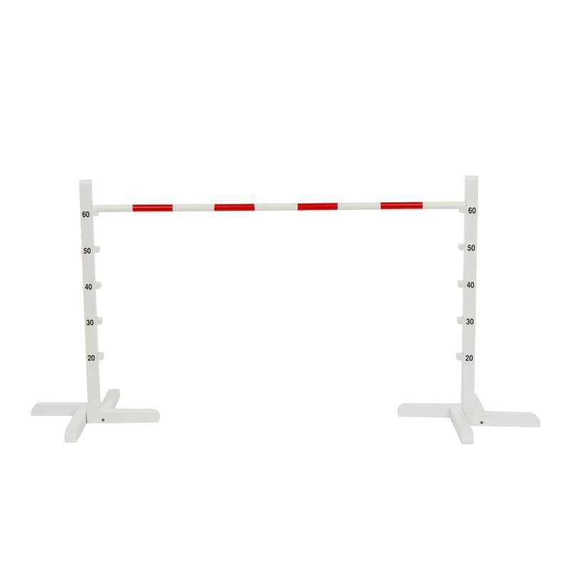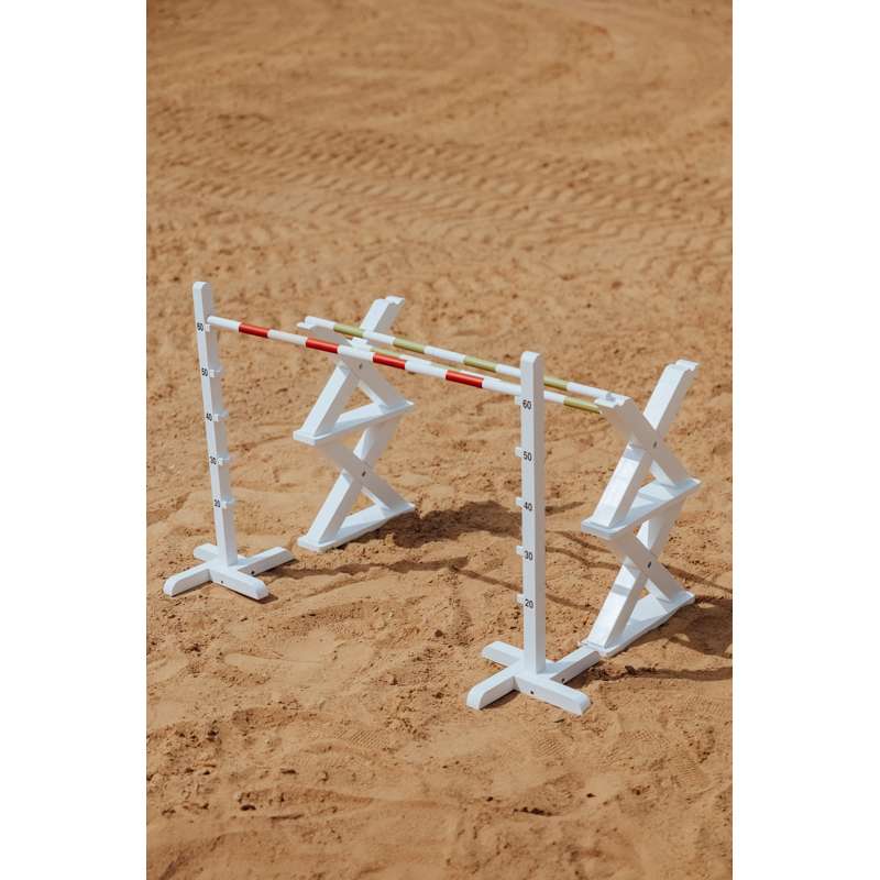 The horse jump consists of three parts and is easy to assemble. The two side poles support the crossbar, which can be adjusted in height. This way, both small and large minis can jump successfully over the jump.
