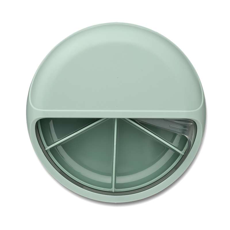 A beautiful and practical snack box for both big and small. SnackDISC is designed as a round cassette with a rotating disc/turntable. The turntable has 5 compartments that can be filled with delicious snacks, such as mini biscuits, raisins, nuts, cucumber, apple, grapes, or dried berries/fruits.