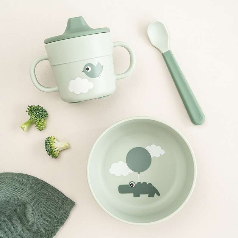 Done By Deer Foodie First Cutlery Set - Happy Clouds - Green