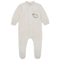 The nightgown has feet, so there won't be cold toes and et sweet sheep in front. 100% organic new wool.