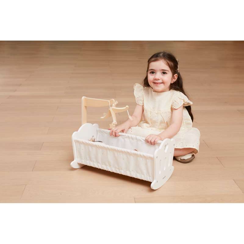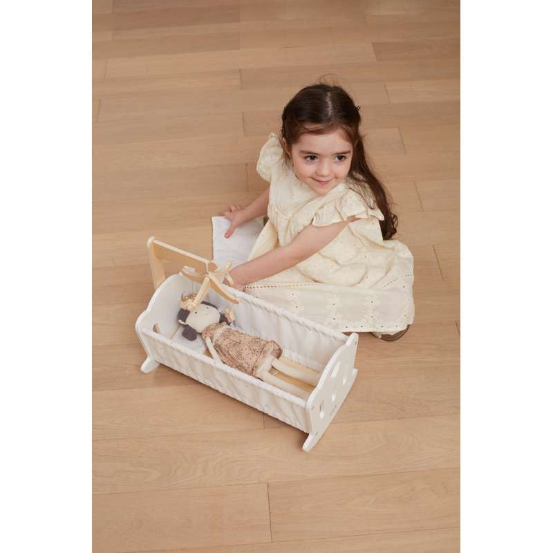 Læg dukken trygt til at sove i denne smukt fremstillede vugge. Dukkesengen er et charmerende tilbehør til rollelegen og passer til dukker op til 38 cm.