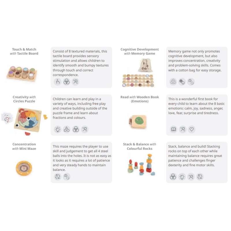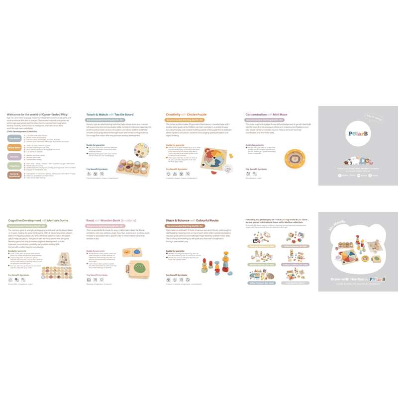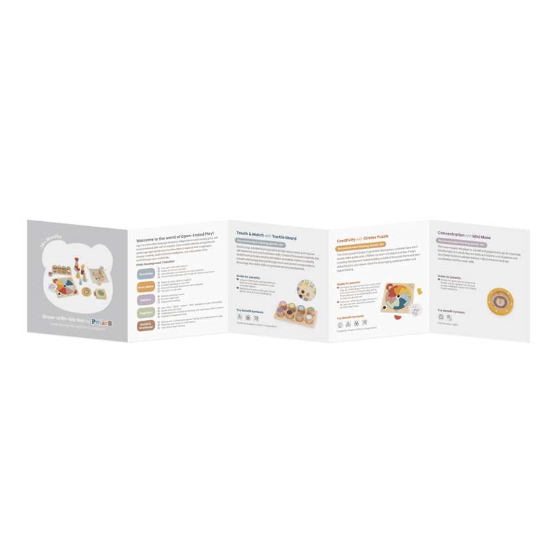 Grow-with-Me boxes support children's learning during important developmental stages with toys that are tailored to their age. They also save parents time and energy by selecting age-appropriate, safe, and educational toys from the market.