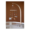 A practical wooden mobile holder that can be easily mounted and secured between the slats of Sebra Bed, Baby & Jr. or another crib, cradle, changing table, or playpen with slats. Hang a baby mobile on the mobile arm and create et a cozy environment around the baby.