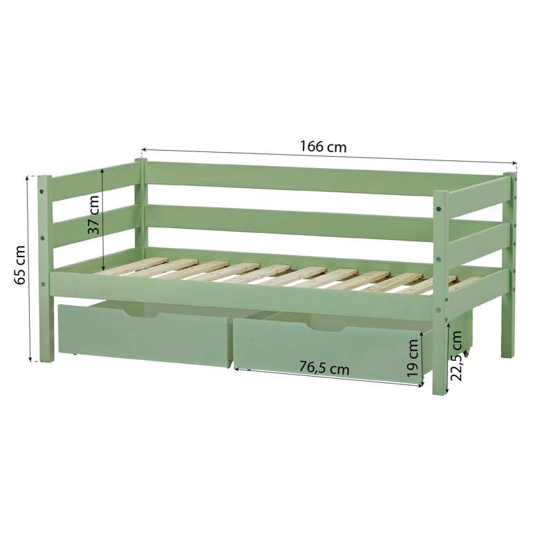 A variante 90x200 cm é adequada para camas com as seguintes medidas: 70x190 e 90x200 cm. Este conjunto de gavetas é compatível tanto com a série ECO Dream como com a série ECO Luxury da Hoppekids com estas medidas.