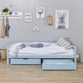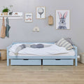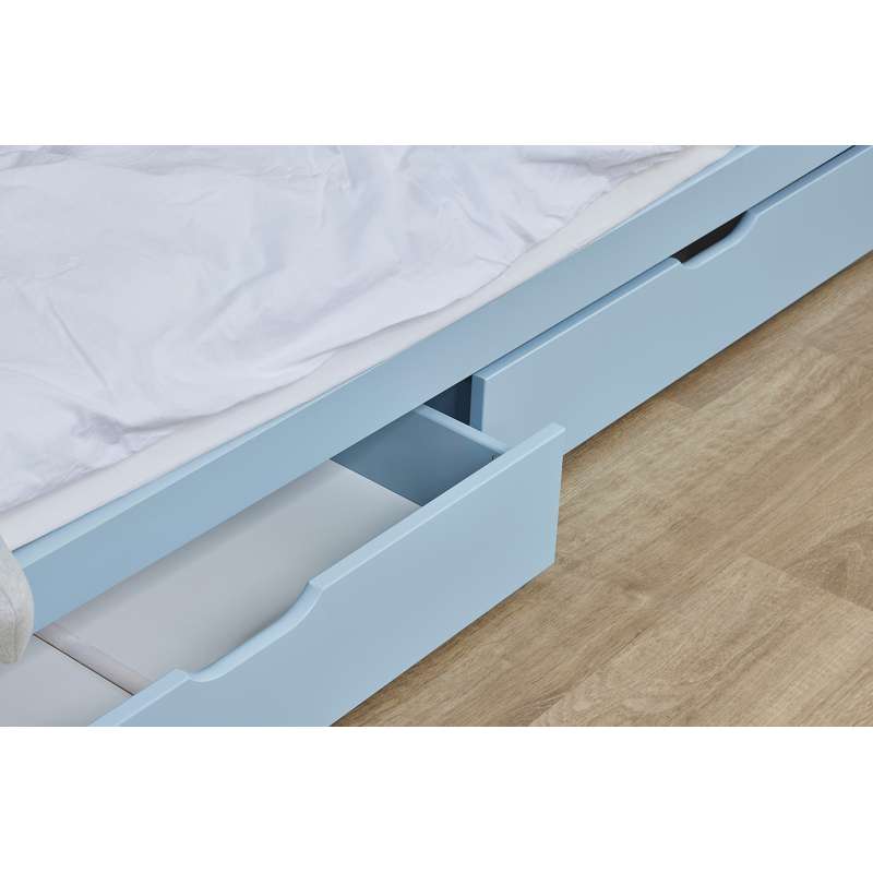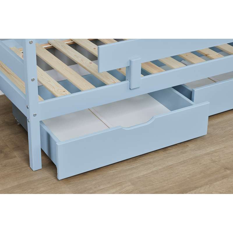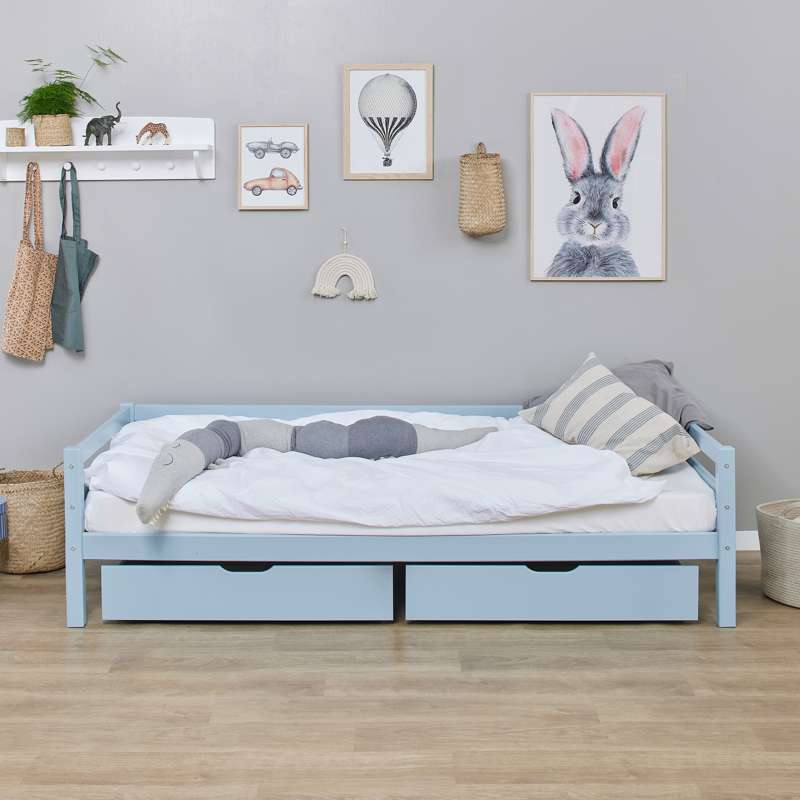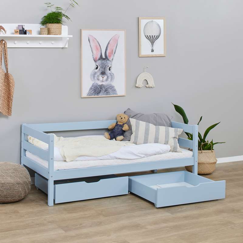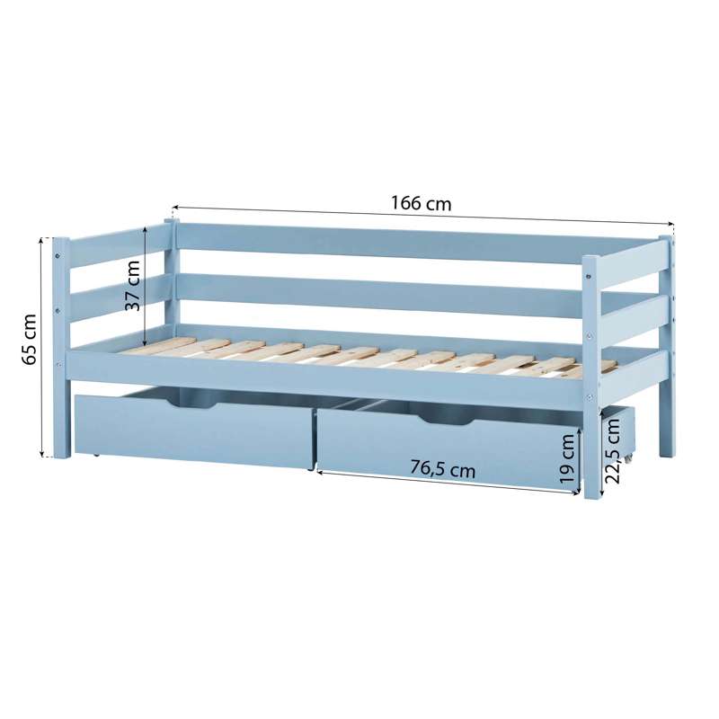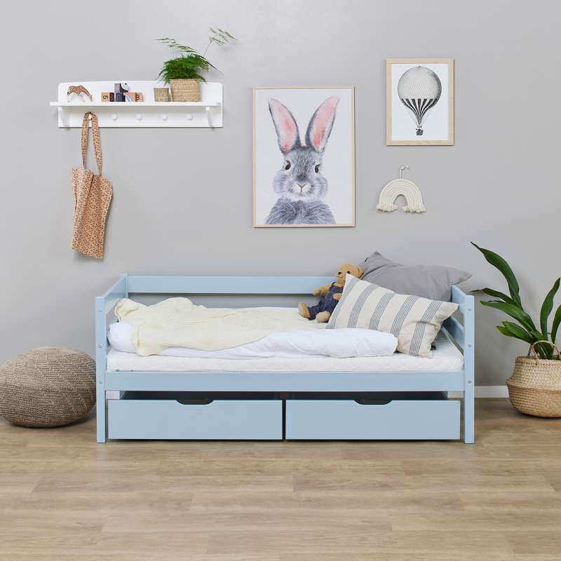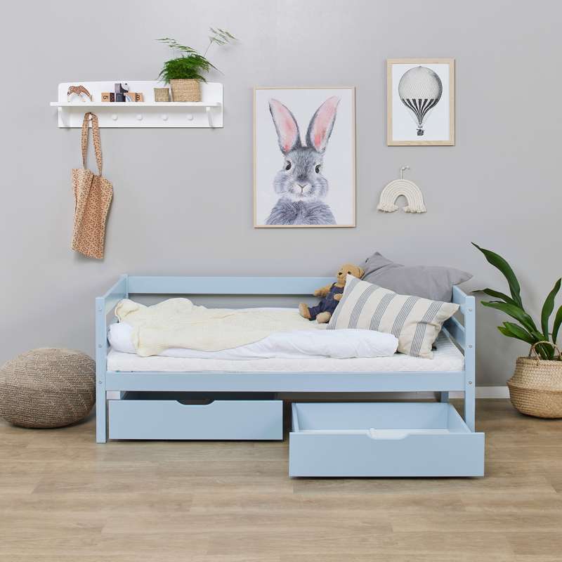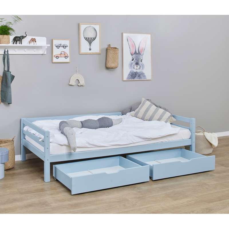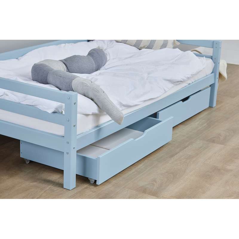 Utilize o espaço sob a cama para armazenamento, com o et conjunto de gavetas inteligente da Hoppekiks. O conjunto de gavetas é composto por 2 grandes gavetas largas com rodas, para que possam ser facilmente puxadas para frente e para trás sob a cama. As gavetas são espaçosas, proporcionando bom espaço para armazenar brinquedos, roupa de cama ou talvez algo completamente diferente. O conjunto vem numa bonita cor azul, mas está disponível em várias cores bonitas que combinam com as camas da Hoppekids.