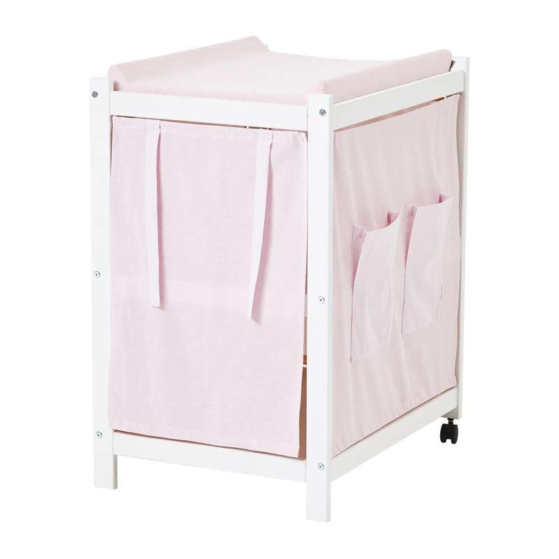 Este conjunto de estante de troca tem uma bonita cor rosa claro.