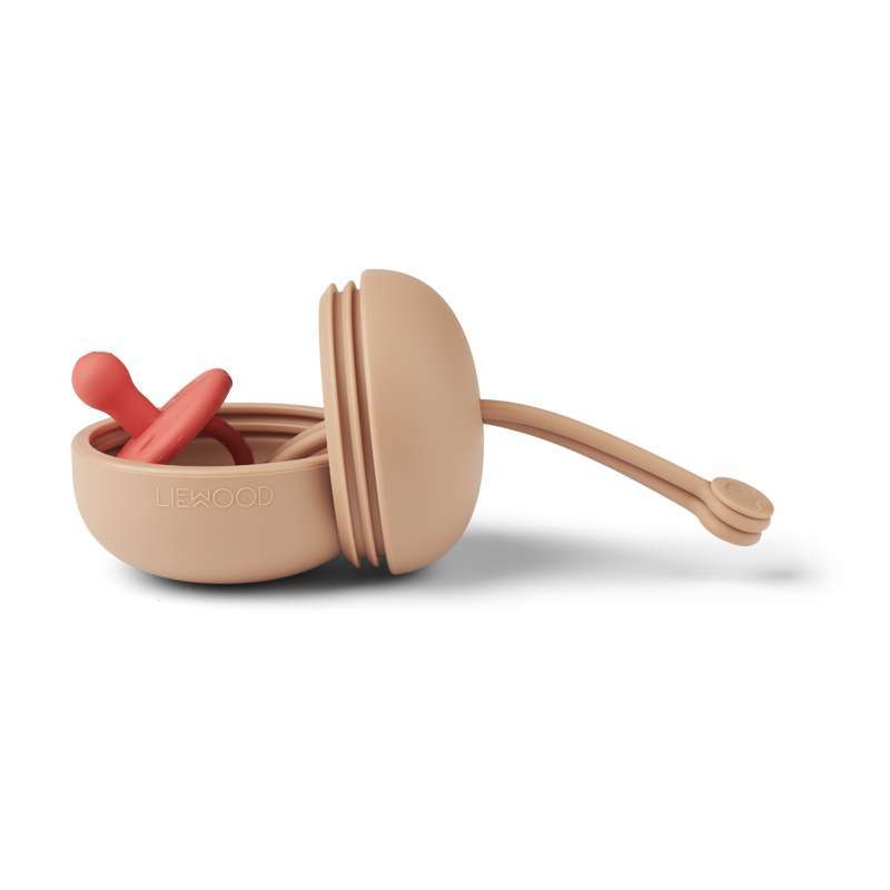 A caixa de Philip para chupetas garante que as chupetas estejam limpas, prontas para uso e sempre fáceis de encontrar. Pode ser fixada ao carrinho de bebé, à mala de fraldas ou a outros lugares.