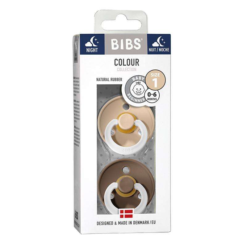Suzeta Bibs Rotundă Colour - 2-Pak - măr. 1 - cauciuc natural - GLOW - Vanilie/Stejar Închis