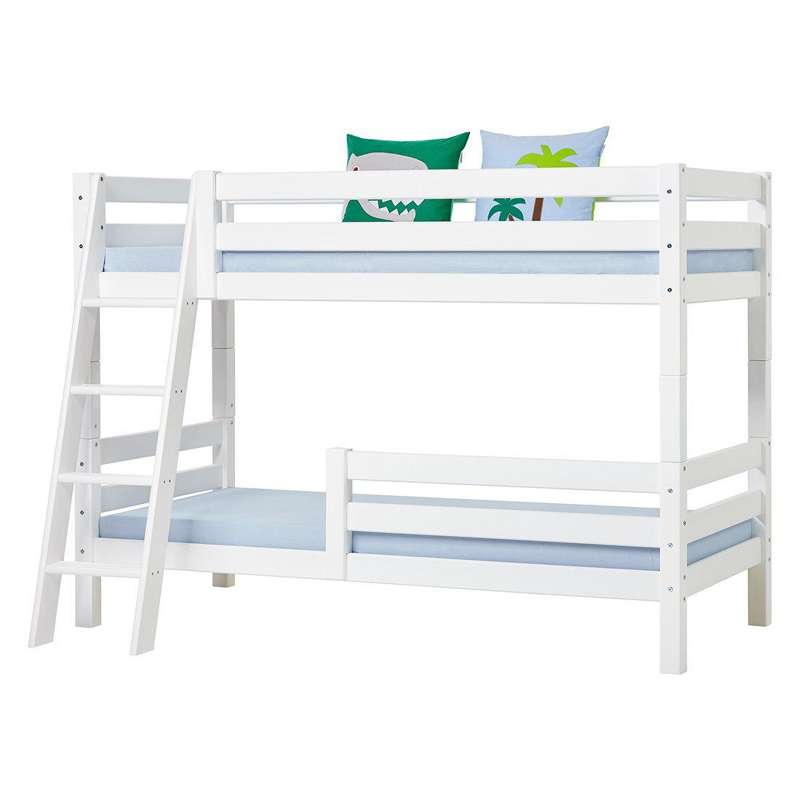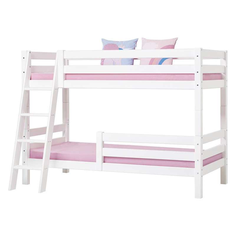 Pat etajat ECO Luxury, inteligent și confortabil, de dimensiunea 90x200 cm, cu scară înclinatã de la Hoppekids. Patul etajat oferă un spațiu suplimentar pentru dormit, fără a folosi mai mult spațiu pe podea. Există balustradă atât la etajul superior, cât și la cel inferior, ceea ce creează o atmosferă sigură și plăcută în paturi. Paturile pot fi, dacă doriți mai târziu, despărțite în două paturi. Patul este certificat cu eticheta de mediu, are garanție pe viață și este tratat cu un lac ecologic pe bază de apă.