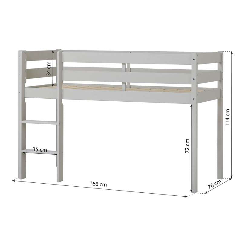 Posteľ Hoppekids polvýška ECO Comfort je perfektná do izieb, kde chcete lepšie využiť priestor. Môžete napríklad využiť priestor na dodatočné úložisko alebo ako herný priestor. Výška postele je 72 cm a je vhodná pre deti, ktoré chcú mať vysokú posteľ, ale nie príliš vysokú.