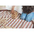 Play & Go 2-v-1 hracia podložka a úložný priestor na hračky v bielej farbe s krásnymi hnedými pruhmi.