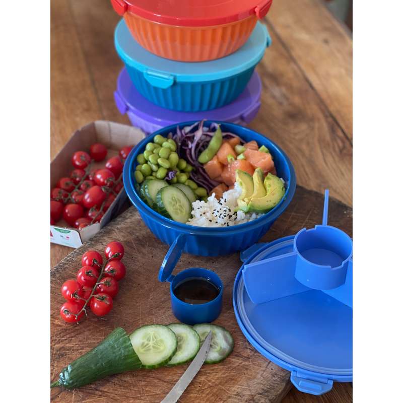 Použite ju buď ako bežnú nádobu na jedlo s oddelenými priestormi - alebo na miešanie chutnej Poke Bowl.