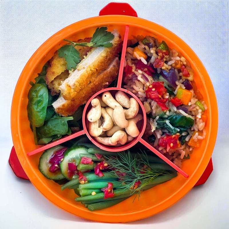 Jednoducho vložte ingrediencie oddelene do rôznych priehradiek a vyberte strednú časť, keď je čas zmiešať to všetko dohromady na chutný šalát.