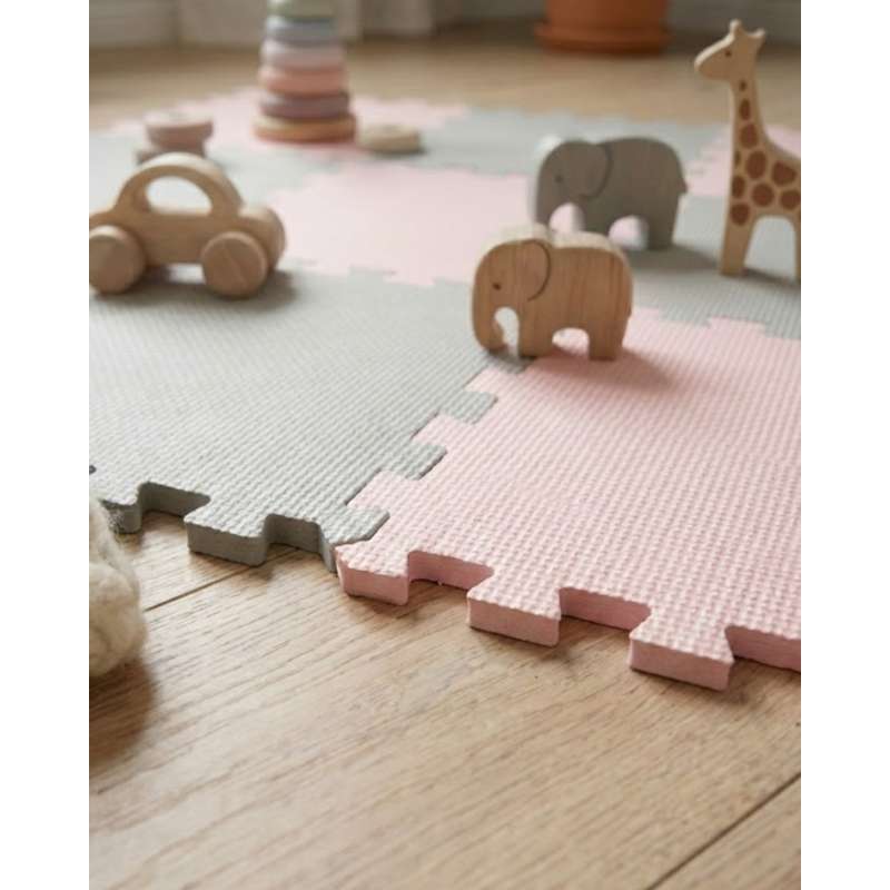 Vsak paket igralne podlage meri skupaj 90 x 90 in obsega 9 kosov velikosti 30 x 30 x 1,4 cm.